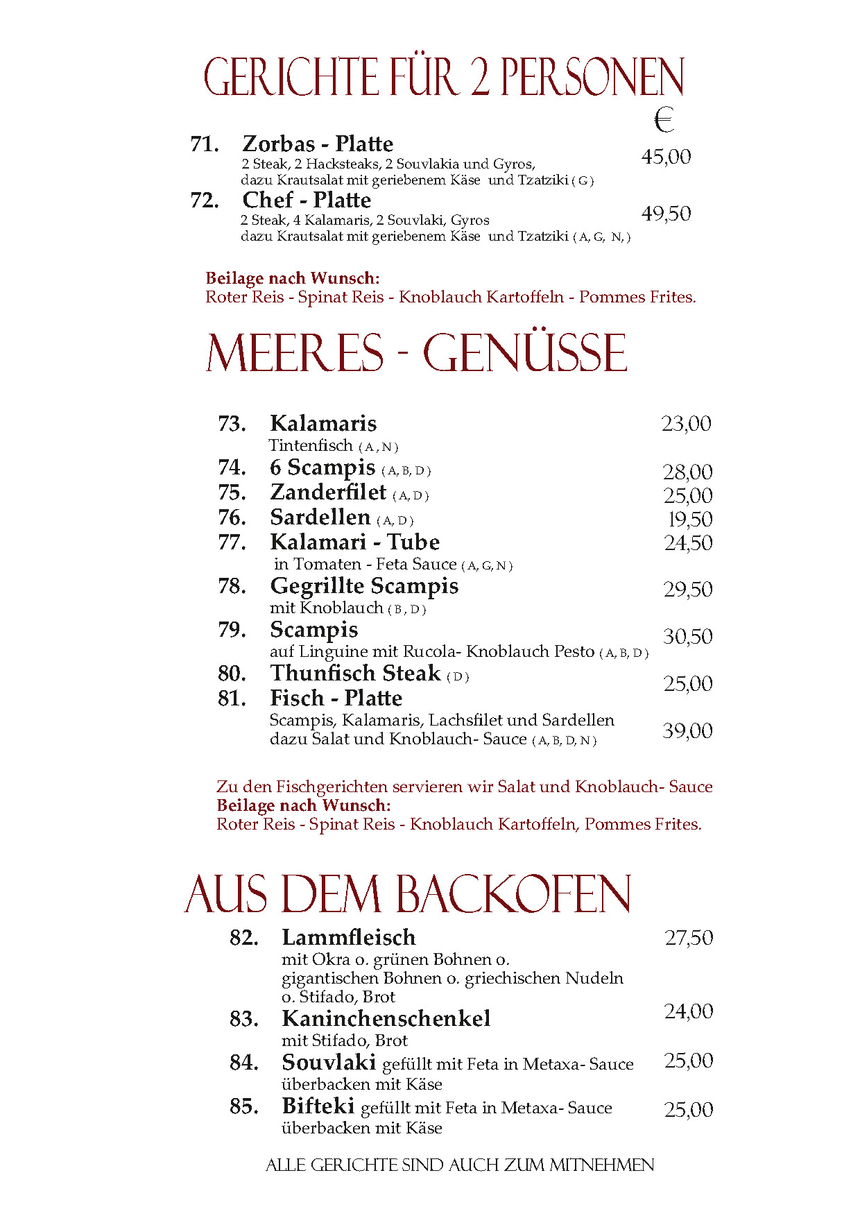 Speisekarte