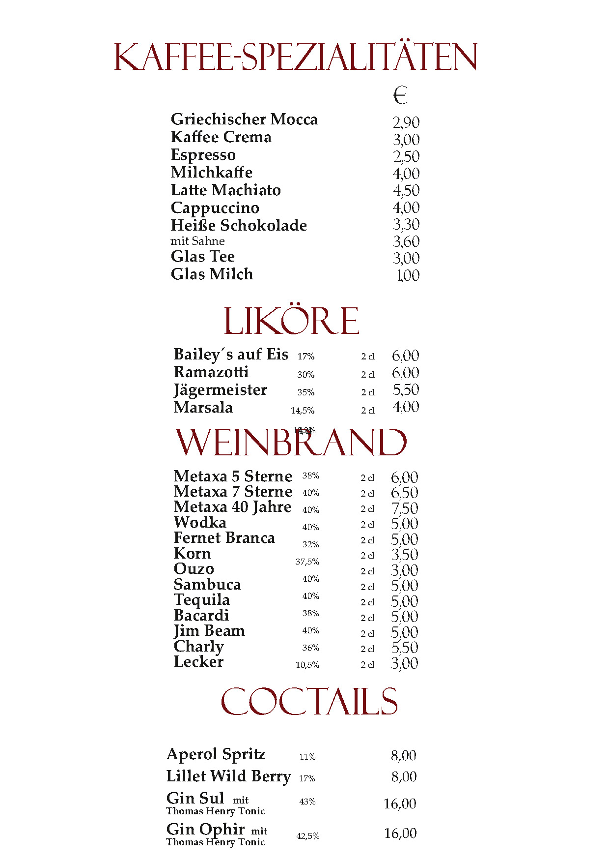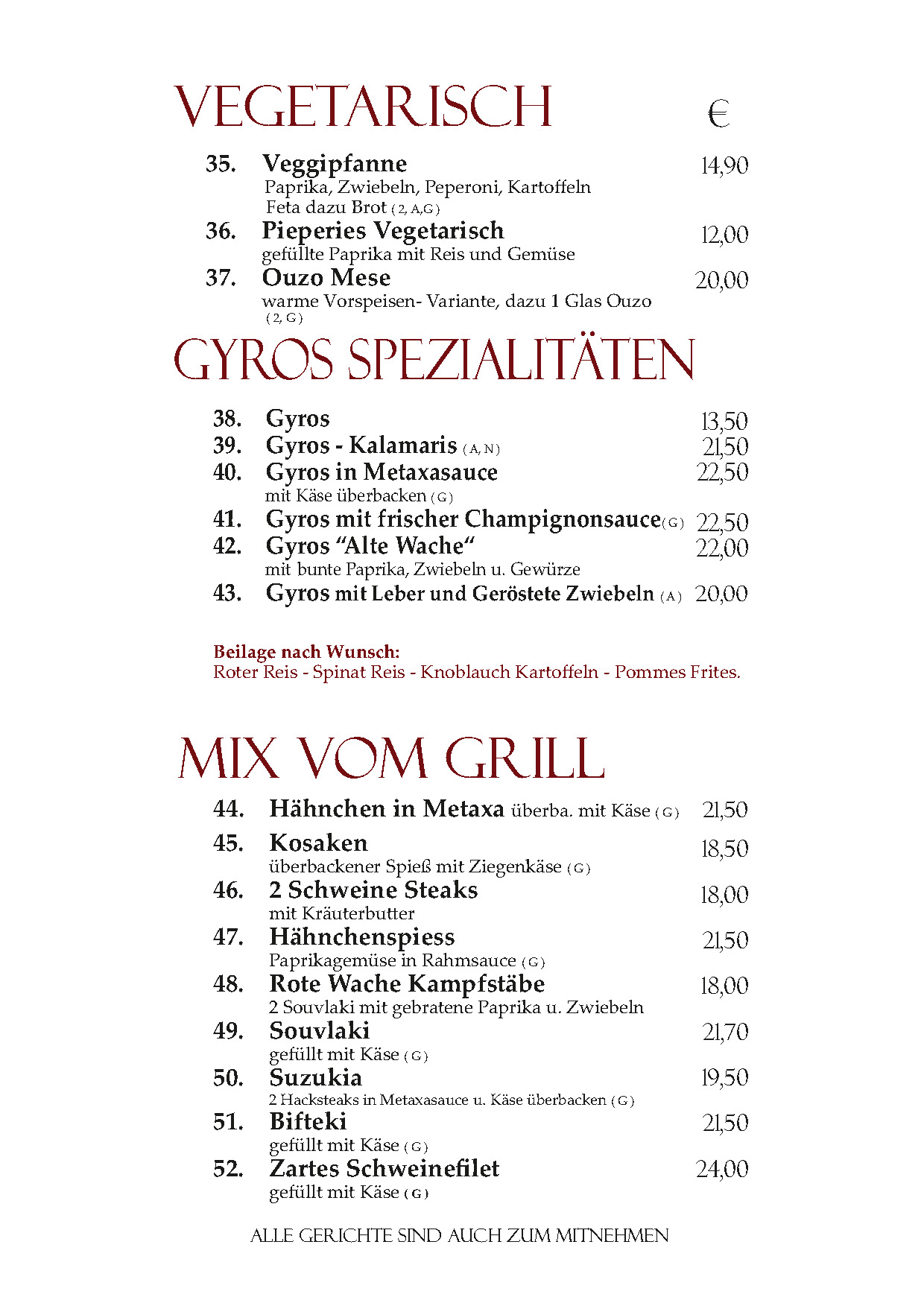 Speisekarte